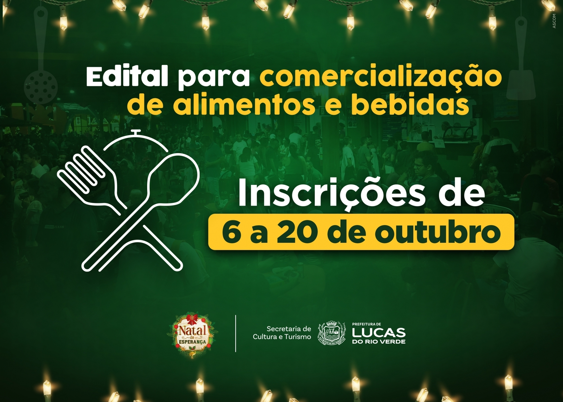 Inscrições para participar do processo de seleção da Praça de Alimentação do evento Natal da Esperança 2025, conforme dispõe o Edital n° 07/2025/SMCT.